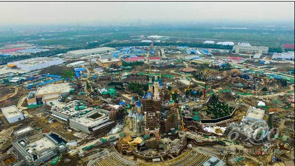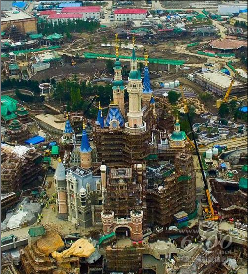 初具规模的上海迪士尼乐园最高标志性建筑——奇幻童话城堡