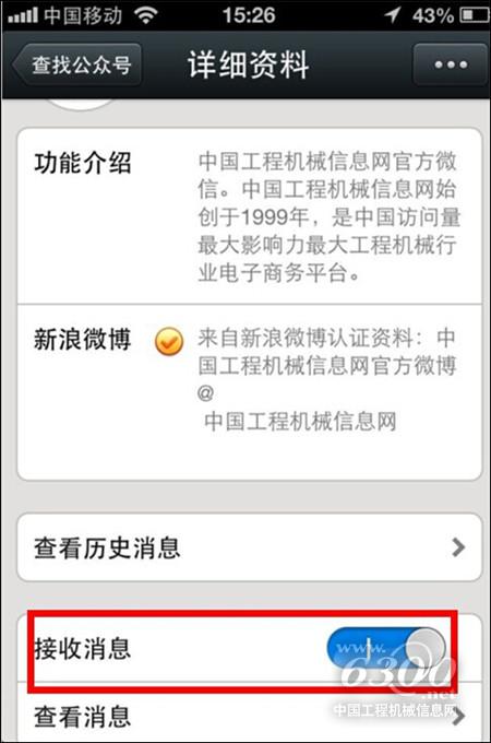 6.关注“中国工程机械信息网”并接收到信息网发送的信息,恭喜你关注成功!如下图: