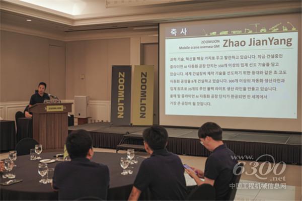 中联重科韩国合作伙伴MIYOUNG公司总经理Mr.Cho先生、中联重科工起海外营销公司总经理赵建阳先生分别致欢迎词,并向各位来宾介绍了中联起重机的光辉历史和技术成就,赢得现场阵阵掌声。