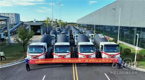 ▲中联重科“凌冠”新能源搅拌车批量交付