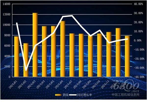 01 2025年1月挖掘机销量12512台,同比增长1.10%