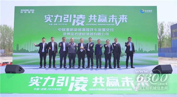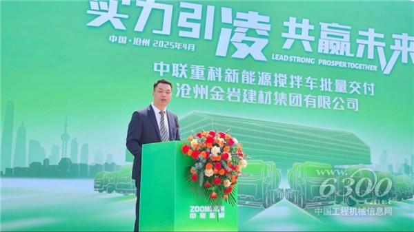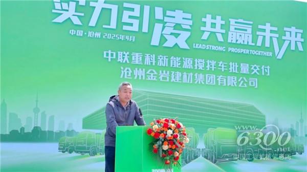 沧州金岩建材集团地产公司副总经理焦照峰在交付仪式上表示:“在国家‘双碳’战略背景下,金岩集团始终积极推动绿色转型。此次引进中联重科‘凌冠’新能源搅拌车,是我们践行环保责任、优化运输结构的重要一步。这批车辆将显著降低碳排放,助力沧州打赢蓝天保卫战,同时提升我们的混凝土供应效率,为京津冀城市建设贡献更多绿色力量。”