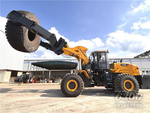 此次推出的大型轮胎机械手,是基于柳工成熟的F330大型叉装车平台精心打造而成。该平台本身就具备高负载、强动力的显著特性,为机械手的卓越性能奠定了坚实基础。这款机械手展现出了强大的工作能力,其抱夹轮胎的最大直径可达4500mm,最大重量能够承载9吨,最大举升高度更是高达6500mm,足以应对各类大型工程机械轮胎的安装需求。