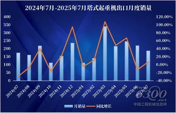 深入分析海关数据可以发现,在出口量大幅增长的同时,出口金额增幅(41.34%)低于数量增幅(50.93%),但单月数据显示7月出口金额增幅(68.34%)高于数量增幅(86.59%),表明产品结构正在优化,反映出中国塔机企业正在从“以价取胜”向“以质取胜”转变,中高端产品占比不断提升。