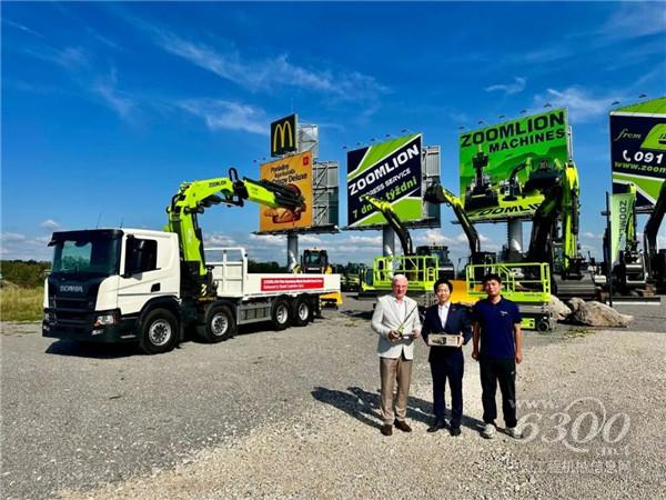▲中联重科德国威尔伯特工厂首台折臂式随车起重机交付欧洲客户
