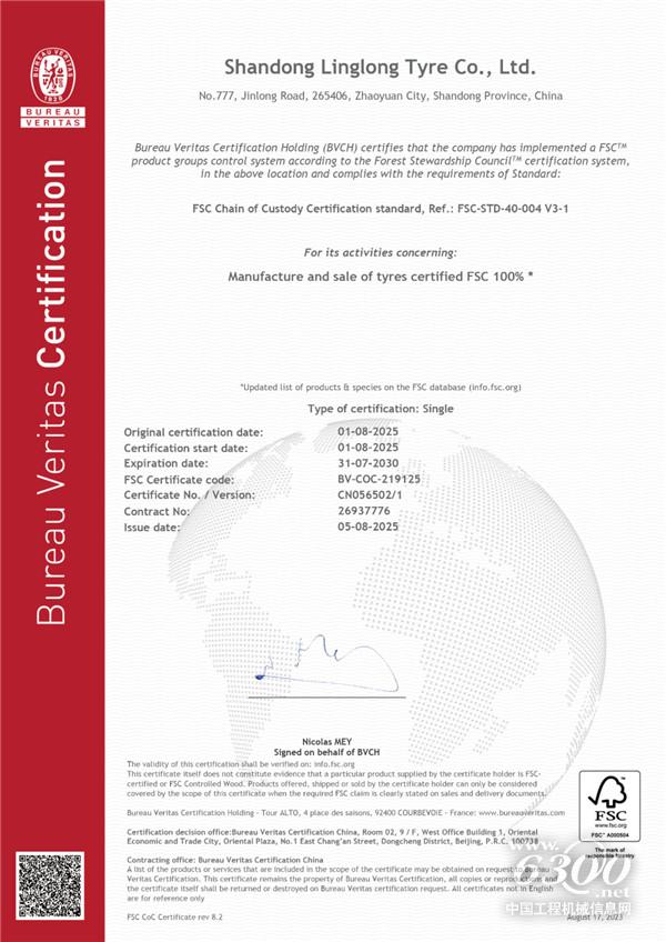 近日,玲珑轮胎正式获得FSC(森林管理委员会)认证,标志着企业在可持续发展和负责任采购方面取得重要突破,体现了玲珑对森林保护的坚定承诺。