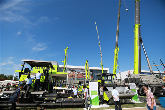 BICES 2017展会上,中联重科携旗下起重机、混凝土、基础施工、路面机械、工业车辆等13款高端绿色产品盛装参展,为全球观众带来了“4.0”产品系列的创新成果。其大气靓丽的产品涂装,卓越的性能表现,展现“大国重器”的全新风貌,获得了广大客户的青睐。