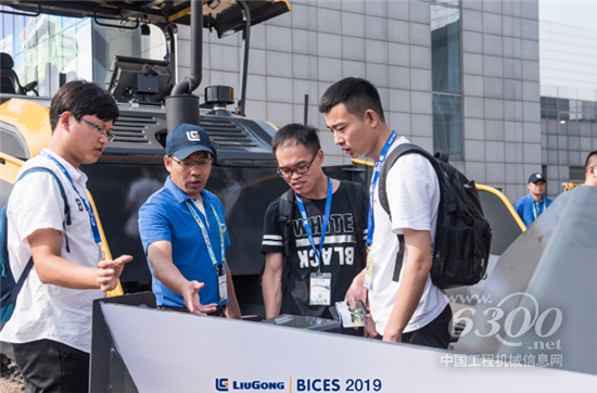 气势磅礴的柳工先进设备,吸引众多展会观众驻足观看