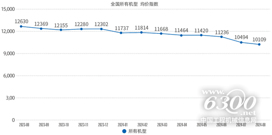 根据上报数据统计计算,2024年8月升降工作平台租金价格指数环比小幅下滑3.67%,除曲臂14~16m(含14m、16m)机型租金指数环比基本持平外,其他所有机型租金价格指数环比均出现不同程度下滑,其中40m(含40m)以上机型租金价格指数环比降幅最大,达到6.30%;2024年8月升降工作平台租金价格指数与2023年同期相比下降19.96%,降幅继续扩大,所有机型租金价格指数同比出现普遍下滑趋势,其中20~24m(含20m、24m)机型同比降幅最大,达到22.76%,40m(含40m)以上机型降幅次之,达到21.74%。